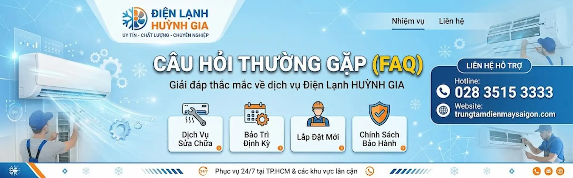 Thấu hiểu những lo lắng đó, Điện Lạnh Huỳnh Gia đã xây dựng một hệ thống dịch vụ minh bạch, rõ ràng từ khâu tư vấn đến thi công. Bài viết dưới đây sẽ cung cấp toàn bộ thông tin chi tiết, quy trình, bảng giá và giải đáp trọn vẹn mọi câu hỏi thường gặp (FAQ) của quý khách hàng tại khu vực TP.HCM.