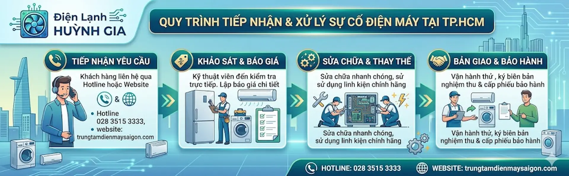 Quy trình tiếp nhận & xử lý sự cố điện máy tại TP.HCM